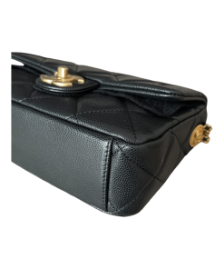 Chanel Black Shiny Grained Calfskin Mini Flap