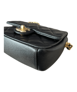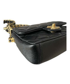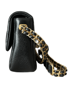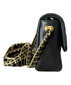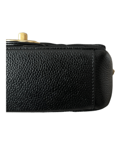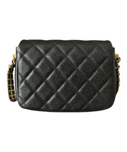 NewThis Chanel bag is in diamond quilted caviar leather in black. The bag featured a gold chain link shoulder strap threaded with leather and a front gold Chanel CC turn lock.