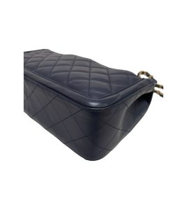 Pre-Owned : ExcellentThis Chanel bag is crafted of lambskin leather in dark blue.The bag features a gold link shoulder strap with a shoulder pad and with aged gold CC presslock.