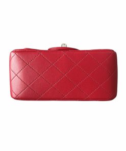 NewThis Chanel bag is crafted of lambskin leather in red.The bag features a silver CC turn lock with diamond quilted on the top flap and front pocket.