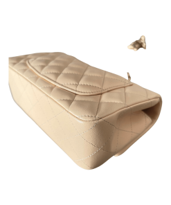Model: ChanelColor: Peachy beigeSize: SmallMeasurement: 21cm x 12cm x 6cmHardware: Brushed Gold HardwareLeather: LambskinStamp/ Year/ Collection: Comes With: Bag cleaning cloth, Box, Card, Dust bag
