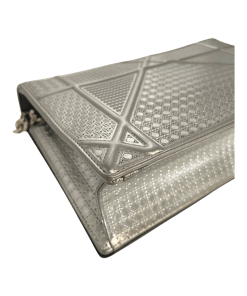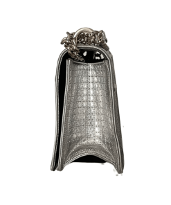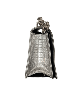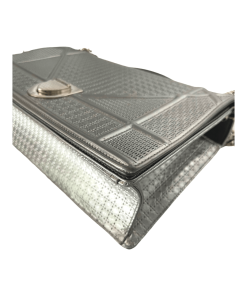 This bold new bag from the house of Dior features a futuristic take on their classic handbag. The contemporary design makes this an instant signature bag for the new Dior women. The Diorama comes in a range of style, colors and materials. This particular bagd from 2015 features a metallic calfskin leather with a perforated design on the outer edge and a micro-cannage motif in the centre. The bag has a stylist chain strap that can be worn long or shortened. The bag has a cannage patterned push-lock and interior that is perfect for holding your girly essential.