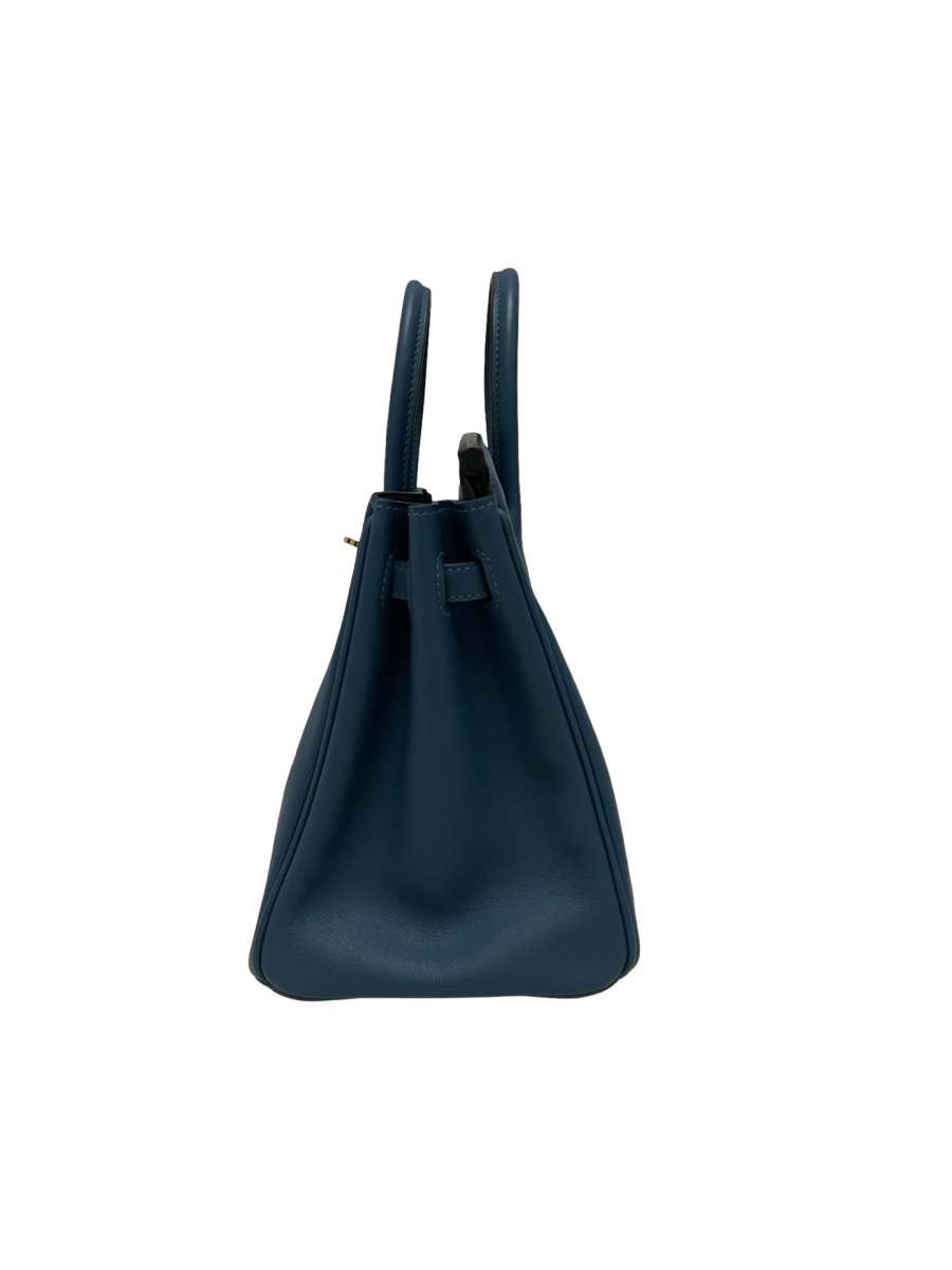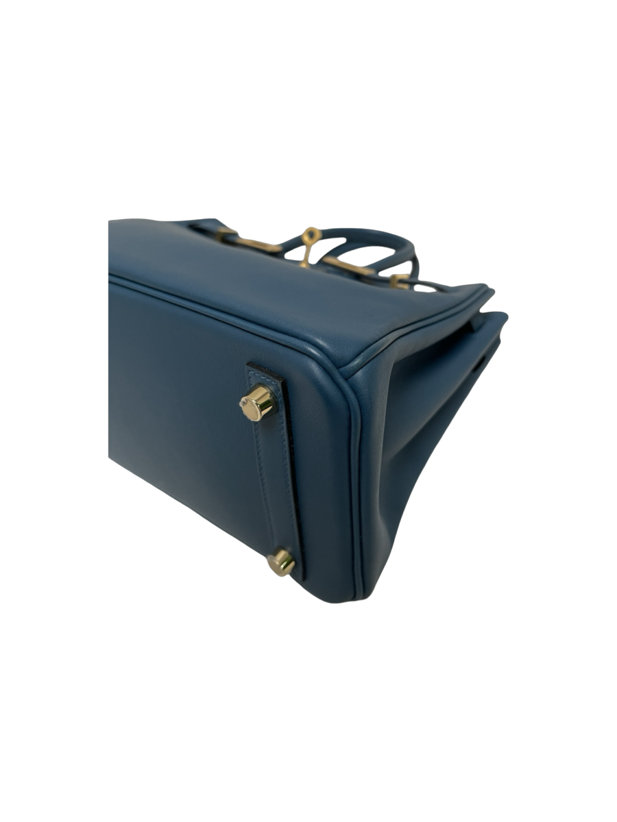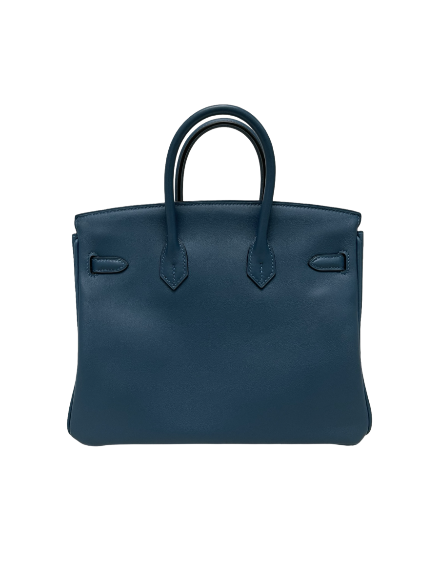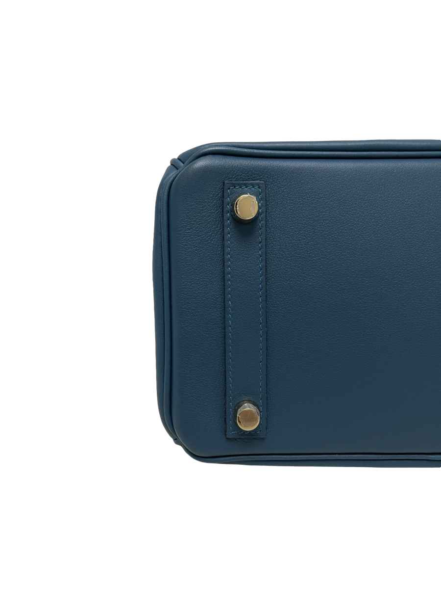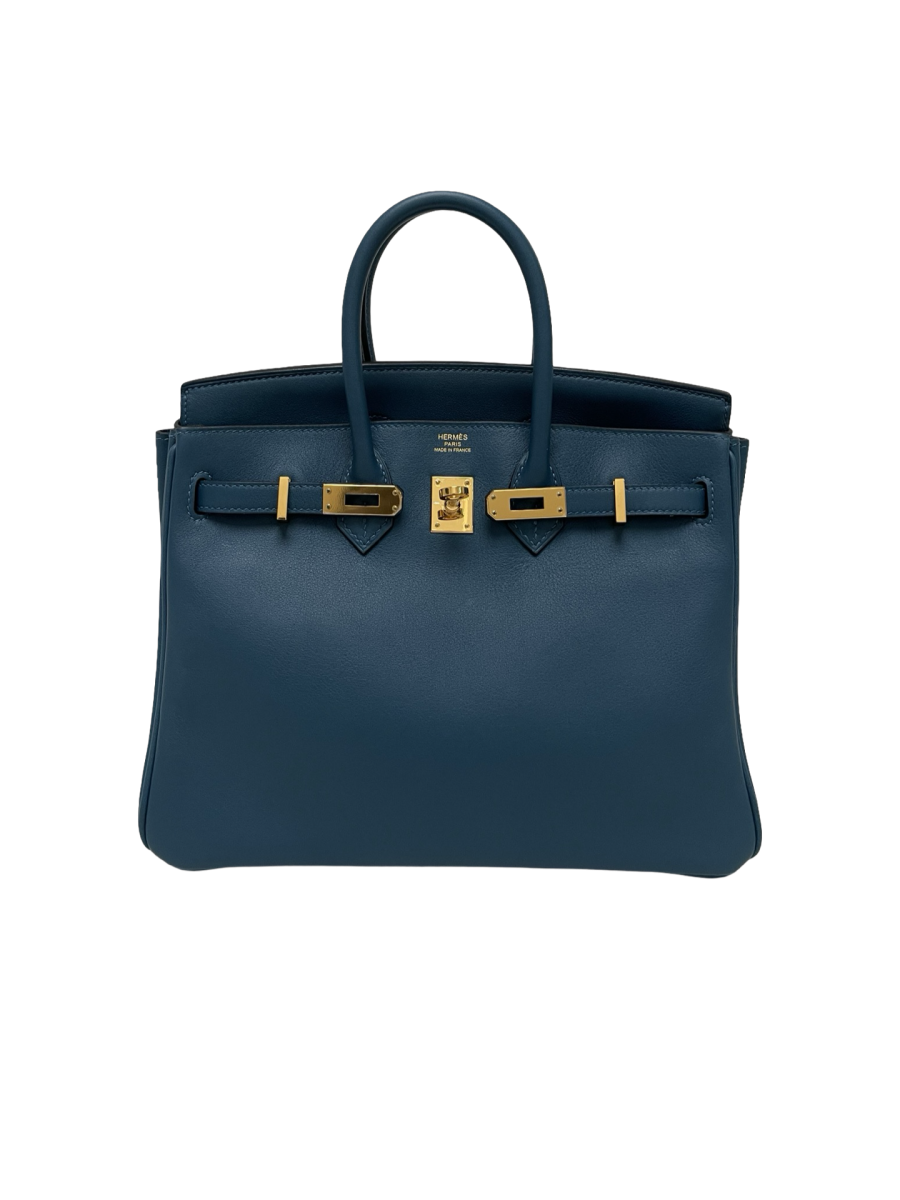 Model: BirkinColor: Blue ColvertSize: 25Measurement: 25cm x 20cm x 13cmHardware: Gold HardwareLeather: SwiftStamp/ Year/ Collection: Stamp XComes With: Dust bag, Keylock clochette, Raincoat, ReceiptCondition