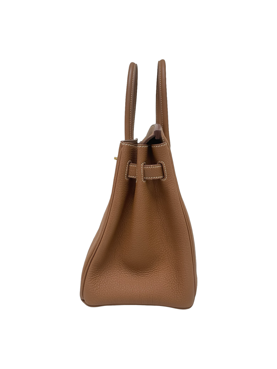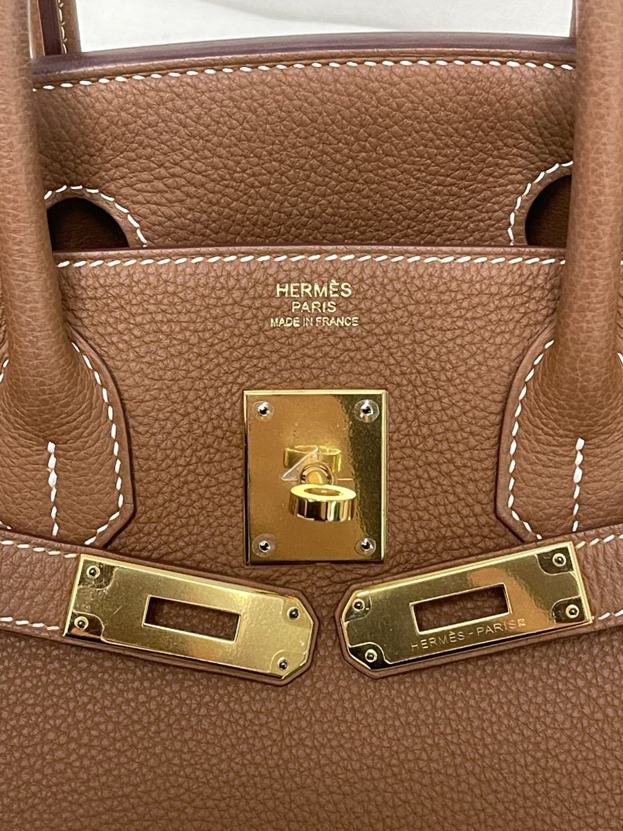 Model: BirkinColor: GoldSize: 30Measurement: 30cm x 22cm x 16cmHardware: Gold HardwareLeather: TogoStamp/ Year/ Collection: Stamp XComes With: Dust bag, Keylock clochetteCondition