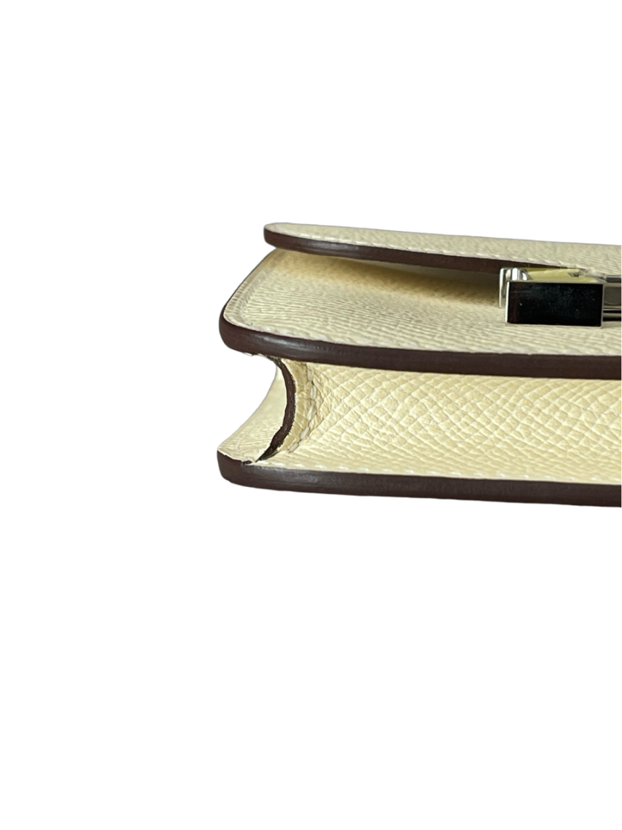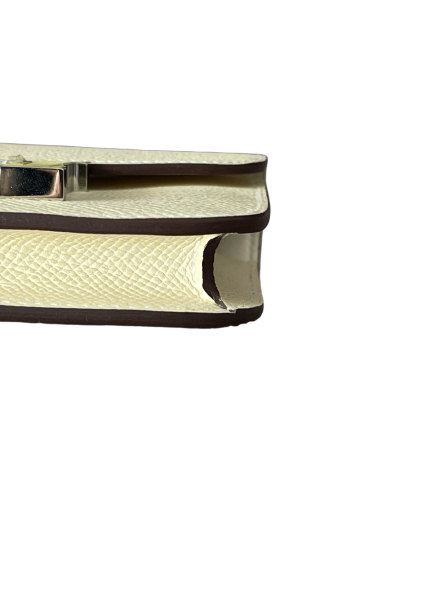 Model: Constance SlimColor: NataSize: SlimMeasurement: 12cm x 10cm x 2cmHardware: Jaune Citron BuckleLeather: EpsomStamp/ Year/ Collection: Stamp BComes With: Full set no receiptCondition
