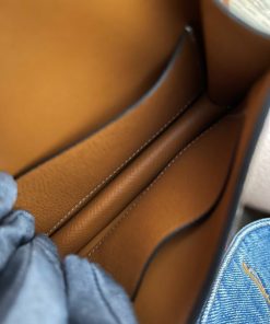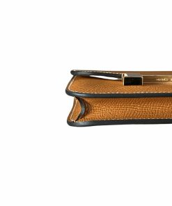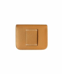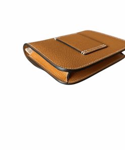 NewThis constance slim is finely crafted of epsom leather in toffee color and featured a frontal gold plated H that the front flap insert through and opens to a cross-gain compact accordian-style partioned interior with card slots.
