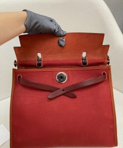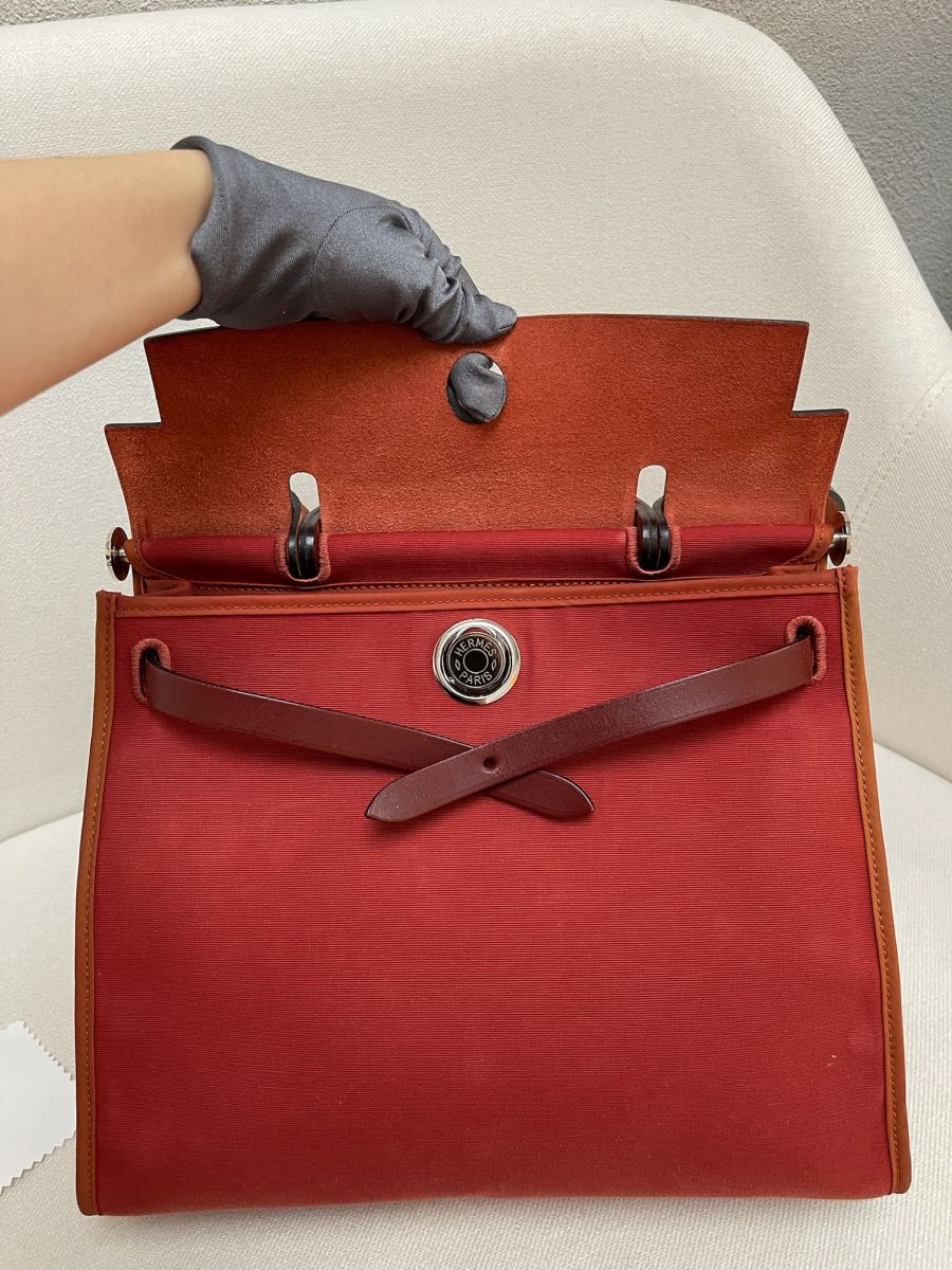 Hermes Herbag 31 Rouge Venitien / Rouge H Toile