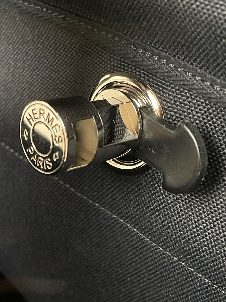 Pre-Owned : Like NewThis herbag cabine zip is in black. The bag come swith removable pouch and leather top handle. This bag is with palladium hardware silver lock.