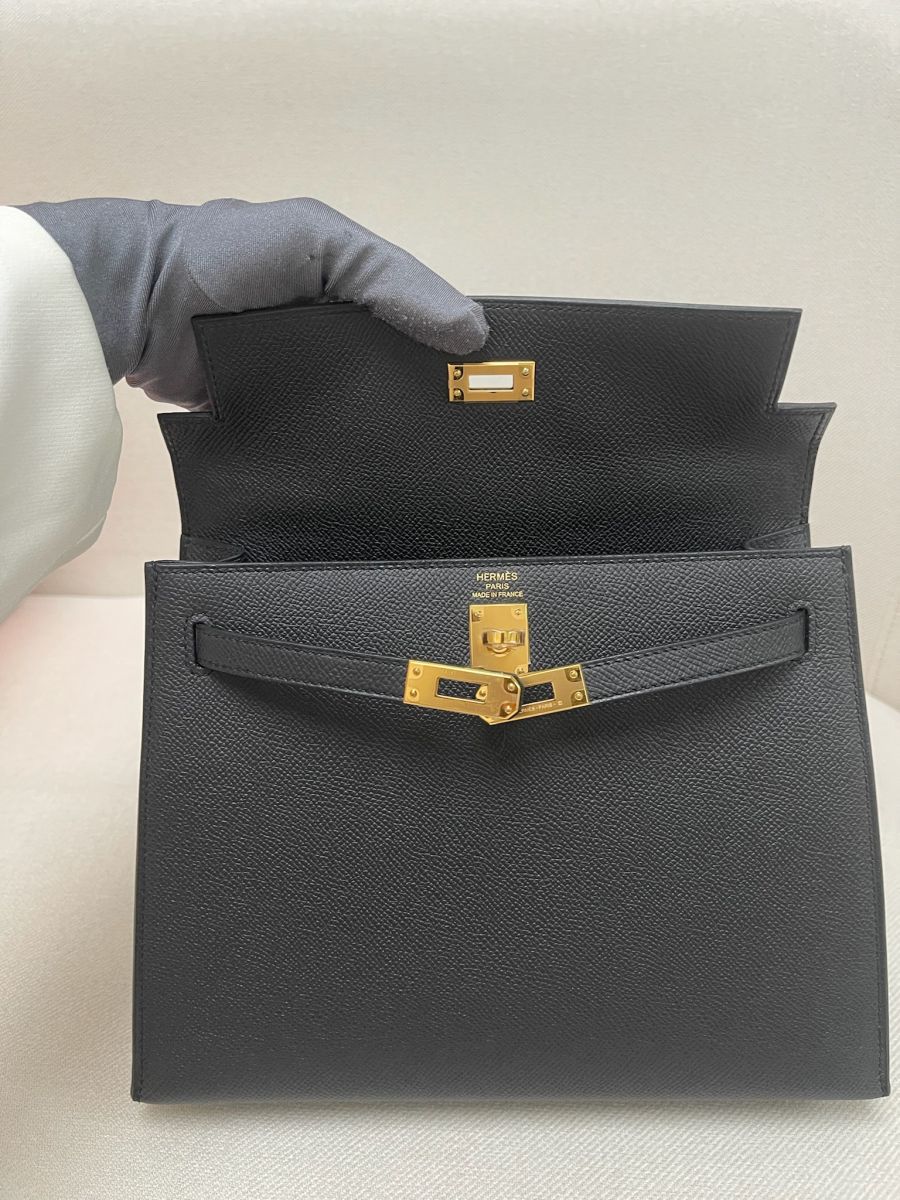 NewThis Kelly 25 is featured in black color. This bag is made from epsom sellier leather with gold hardware. This Kelly is definetely perfect from day to night.