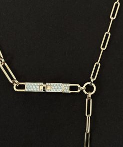 NewThis lariat necklace is in rose gold hardware with diamonds and kelly clasp