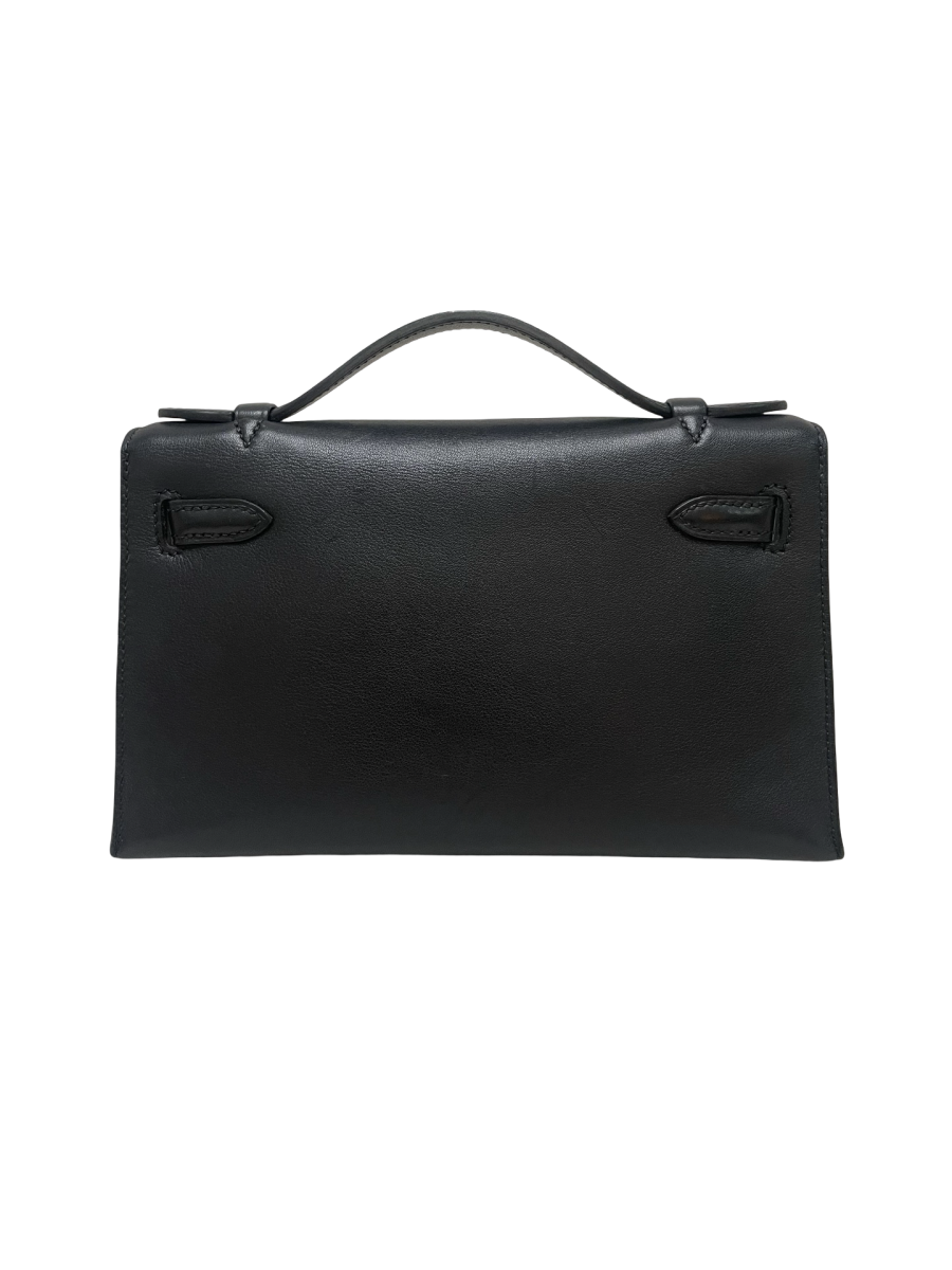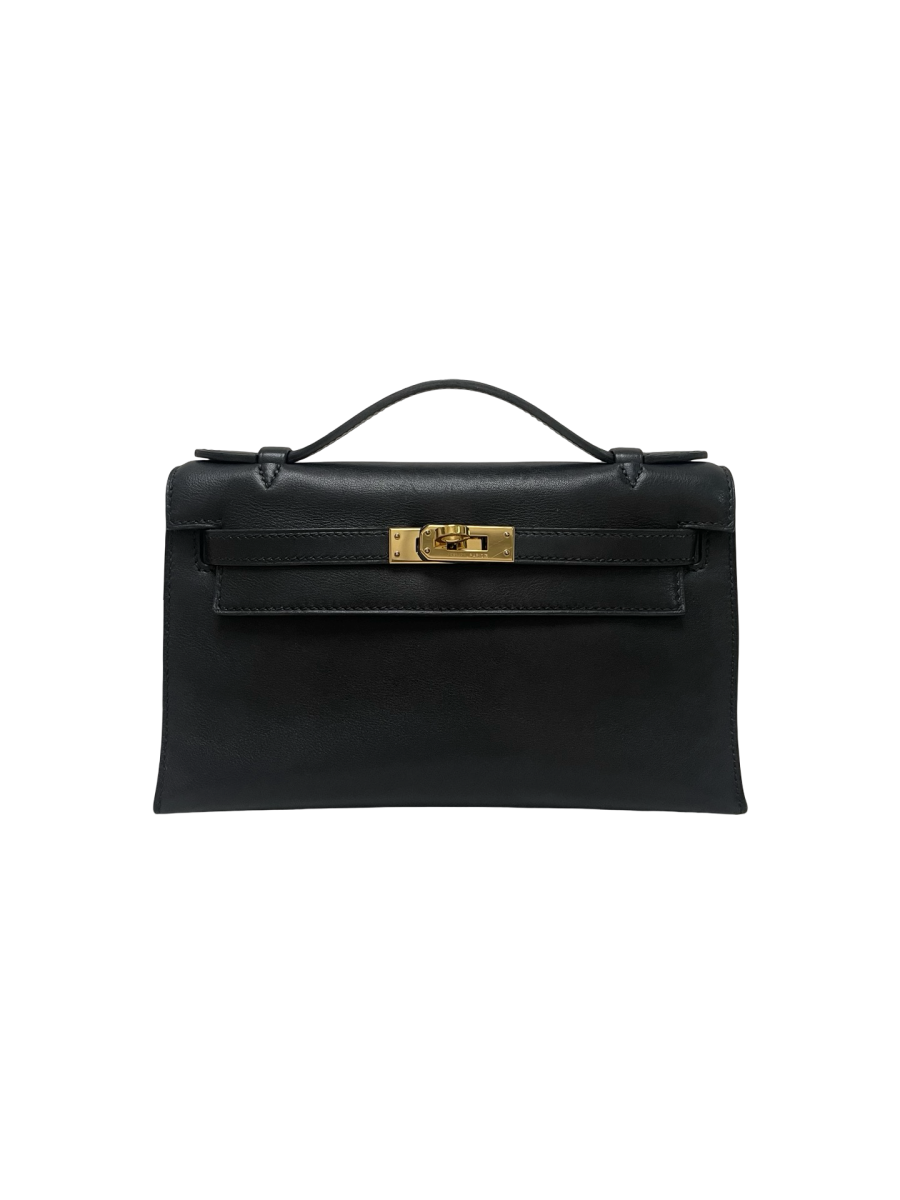 Pre-Owned : ExcellentThis Kelly pochette bag is handcrafted from swift leather in black color. The bag is topped with gold hardware