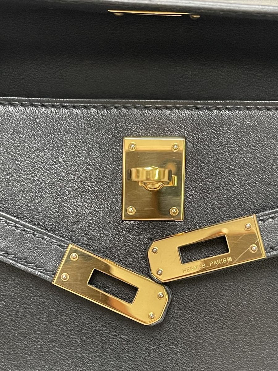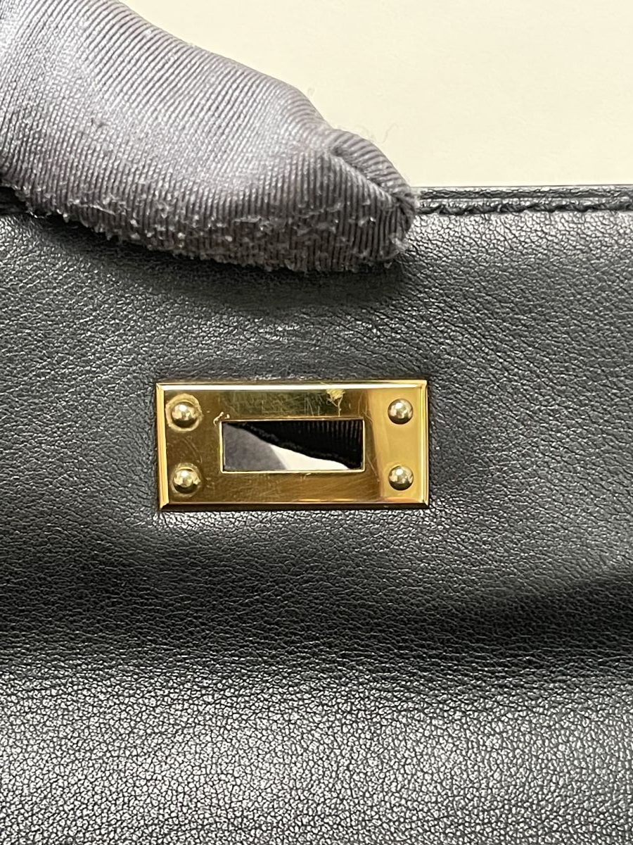 Model: Kelly PochetteColor: BlackSize: Measurement: 22cm x 13cm x 7cmHardware: Gold HardwareLeather: SwiftStamp/ Year/ Collection: Stamp M squareComes With: Box, Dust bagCondition