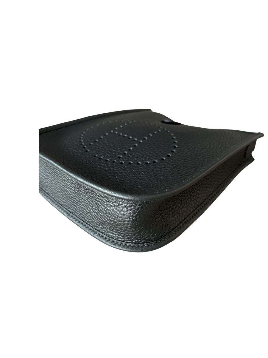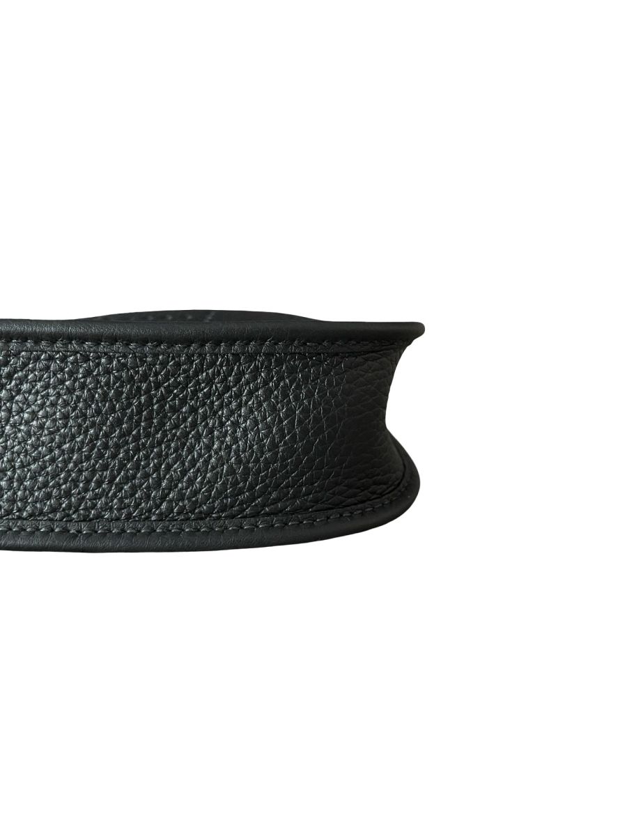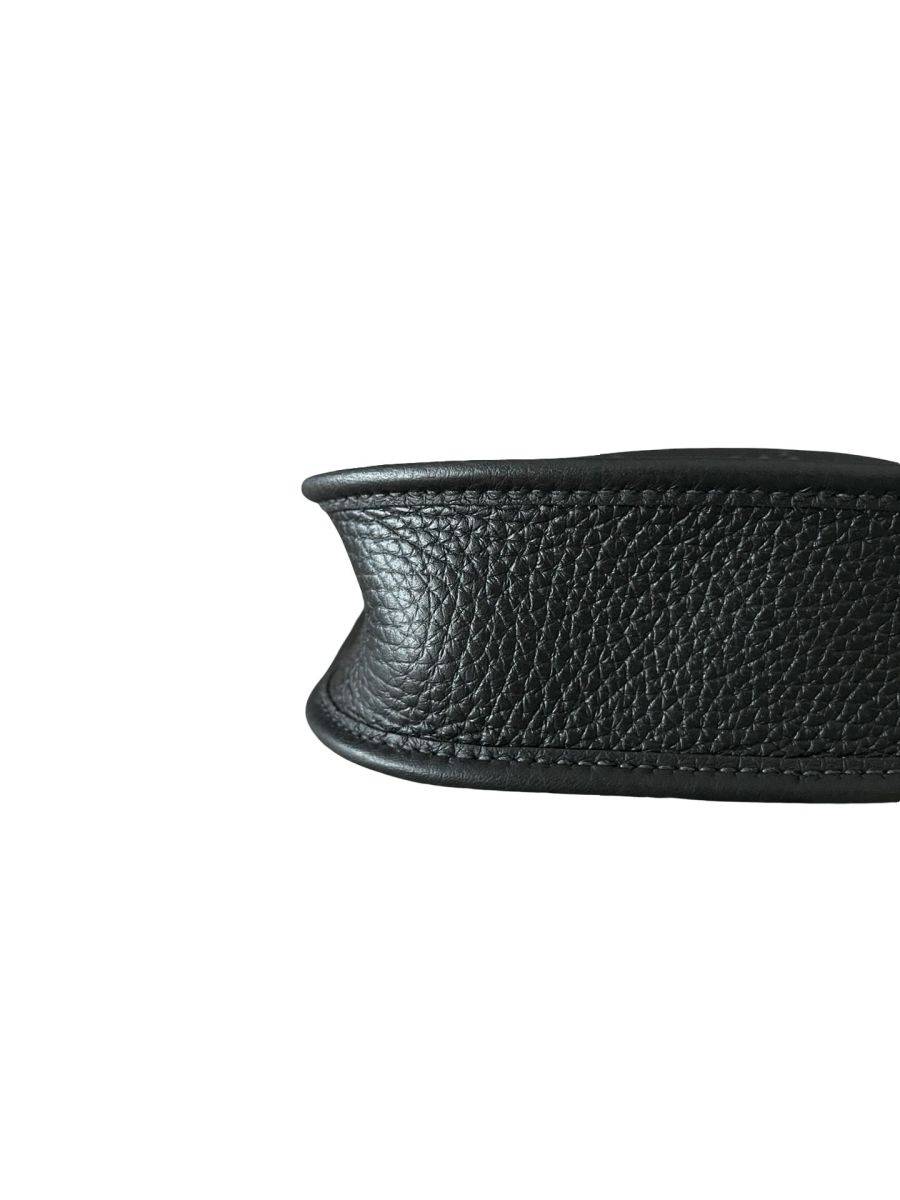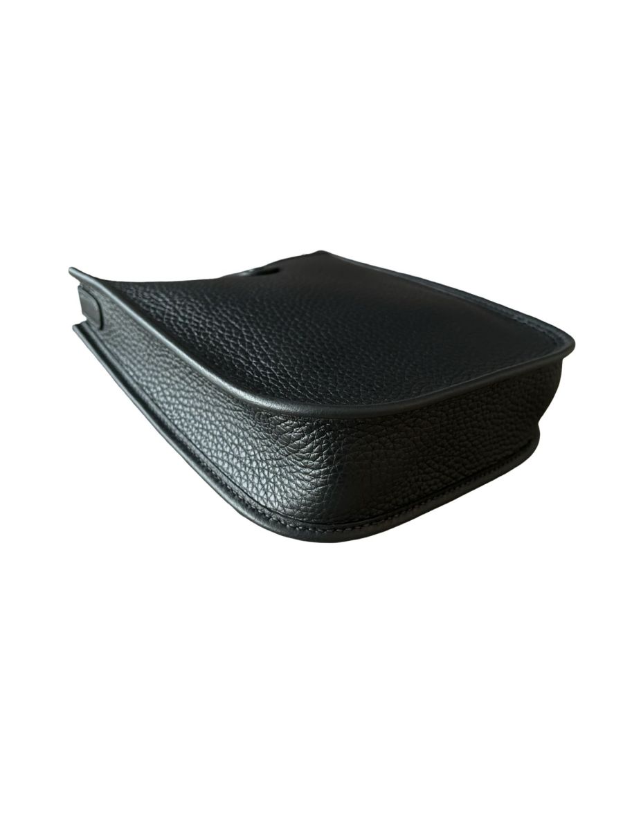NewThis Hermes mini evelyn is crafted from clemence leather in a beautiful shade of black color. The bag is comes with palladium hardware and strap