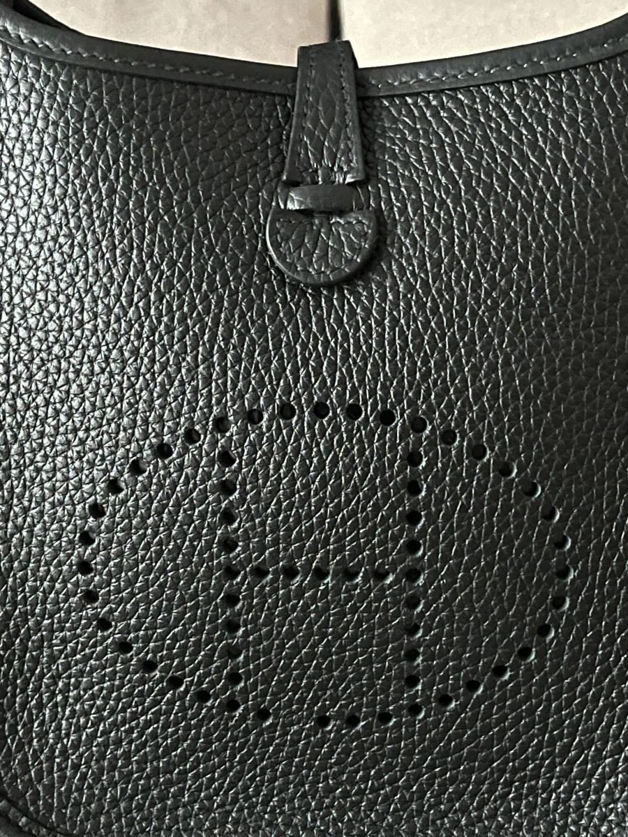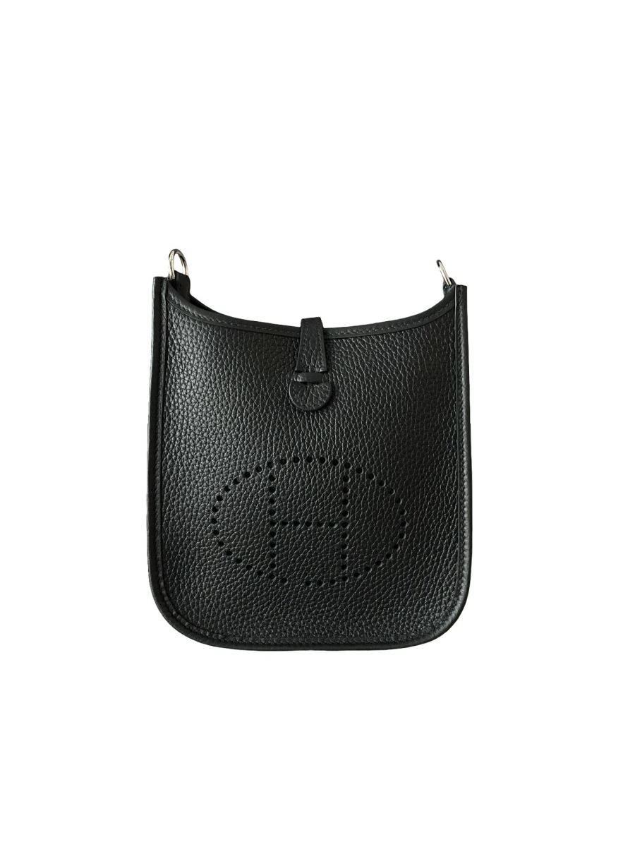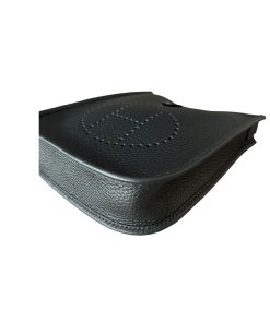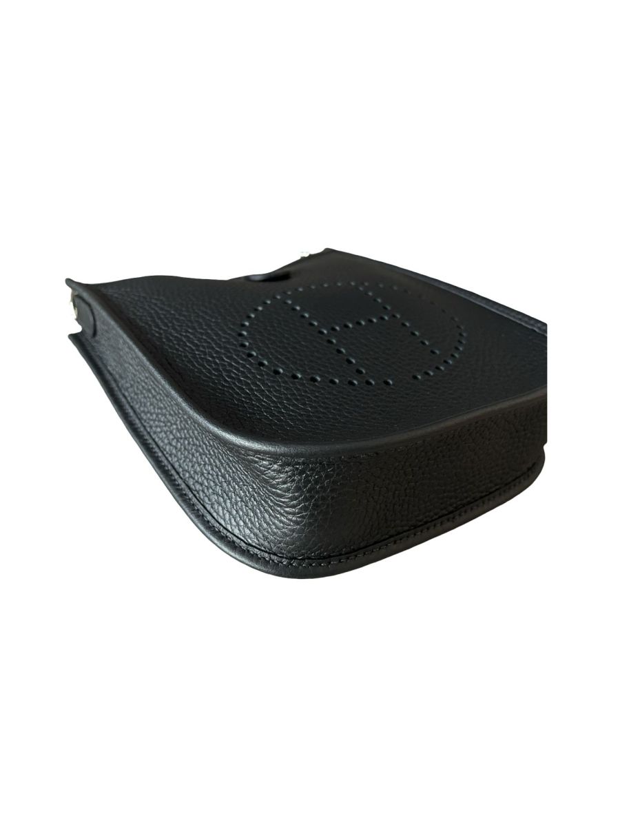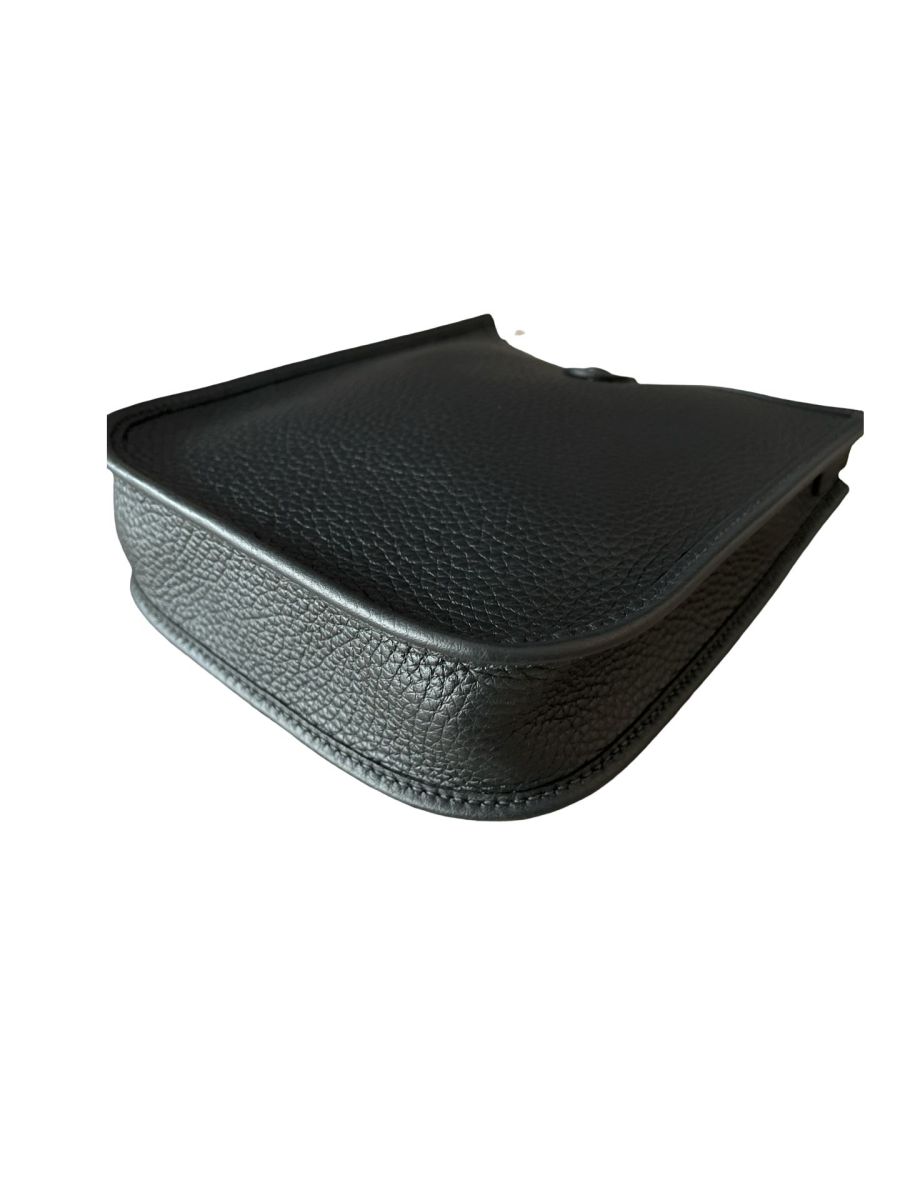 NewThis Hermes mini evelyn is crafted from clemence leather in a beautiful shade of black color. The bag is comes with palladium hardware and strap