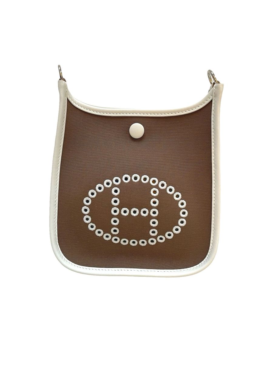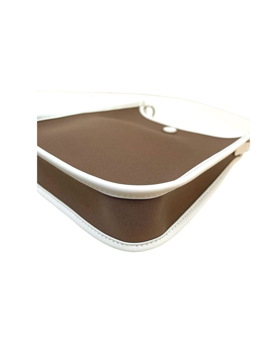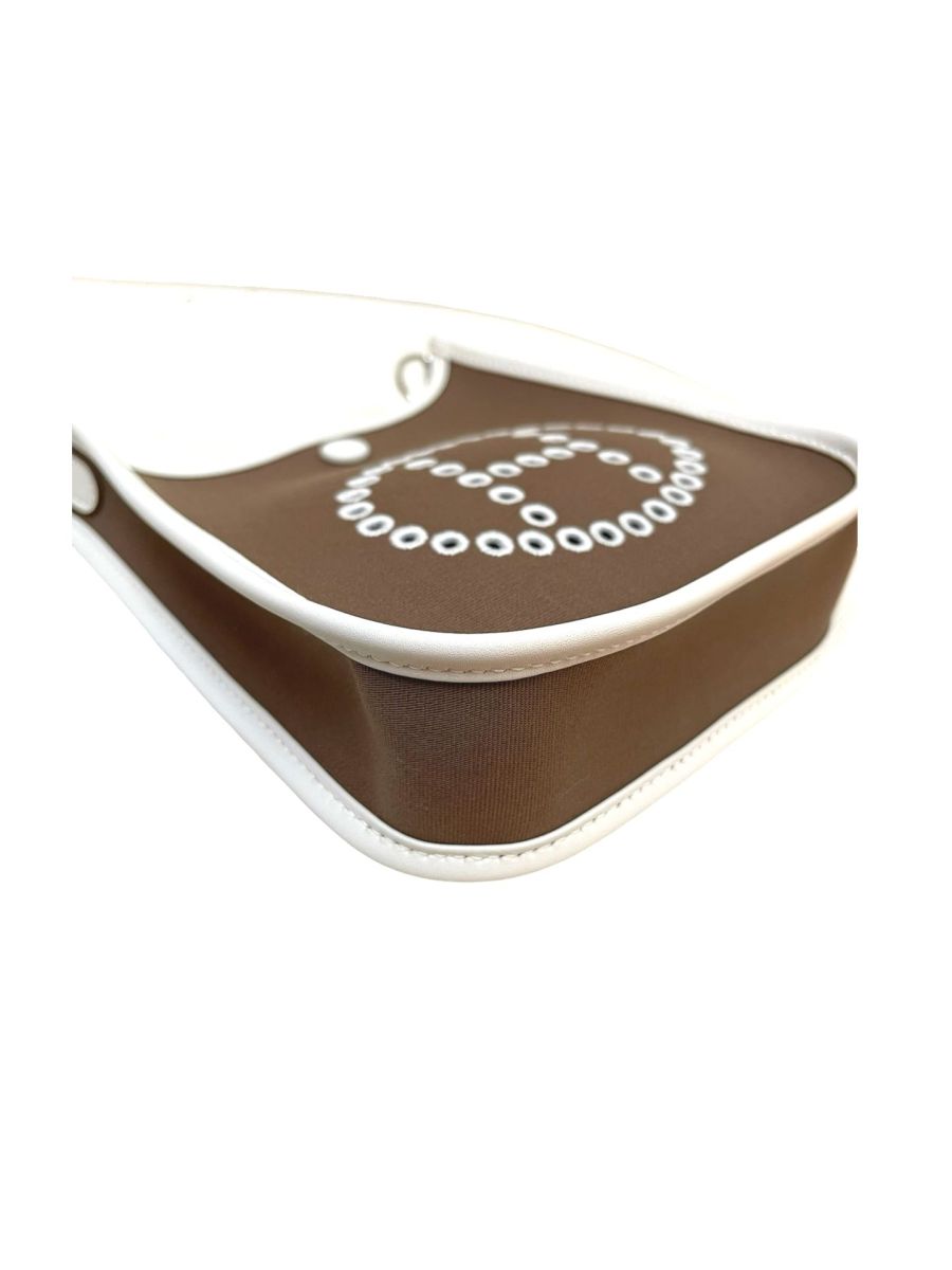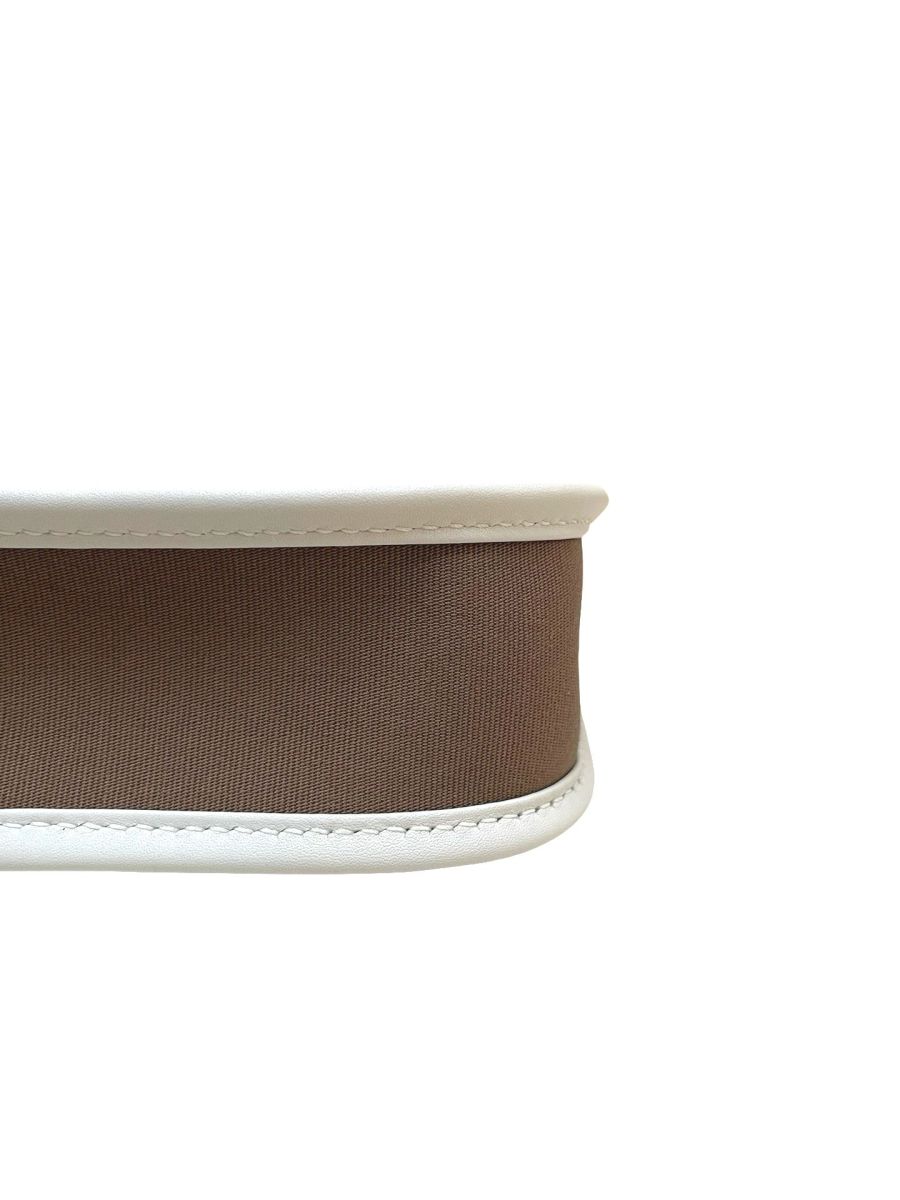 NewThis Hermes mini evelyn is crafted from toile and swift leather in a beautiful shade of etoupe color. The bag is comes with palladium hardware and strap
