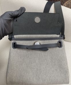 NewThis bag is crafted of toile H and vacher hunter leather with ardoise color. The bag is with shoulder strap and wrist strap, exterior pocket and palladium hardware.