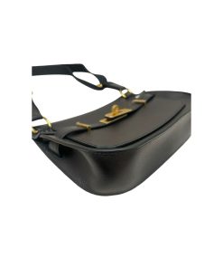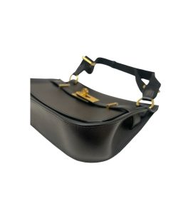 NewThis bag is featured in black color with evergrain leather. The bag featured a adjustable leather body strap, a full front flap and gold hardware. The front clasp opens to a matching leather interior with zipper and patch pocket.