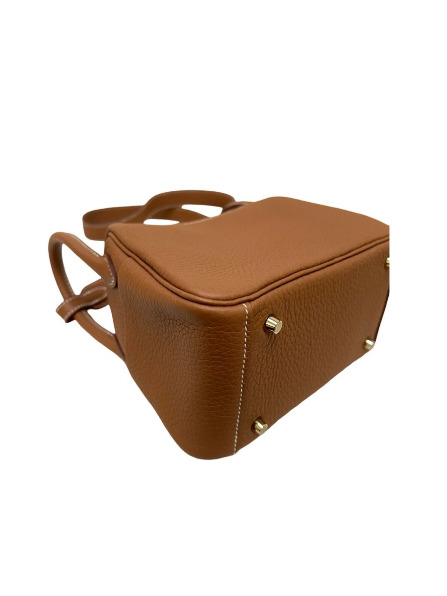 NewThis Hermes Lindy is featured in gold color and gold hardware. This versatile bag can be carried by hand, or shoulder. Spacious interior with an interior pocket on each side, exterior pocket on each side.