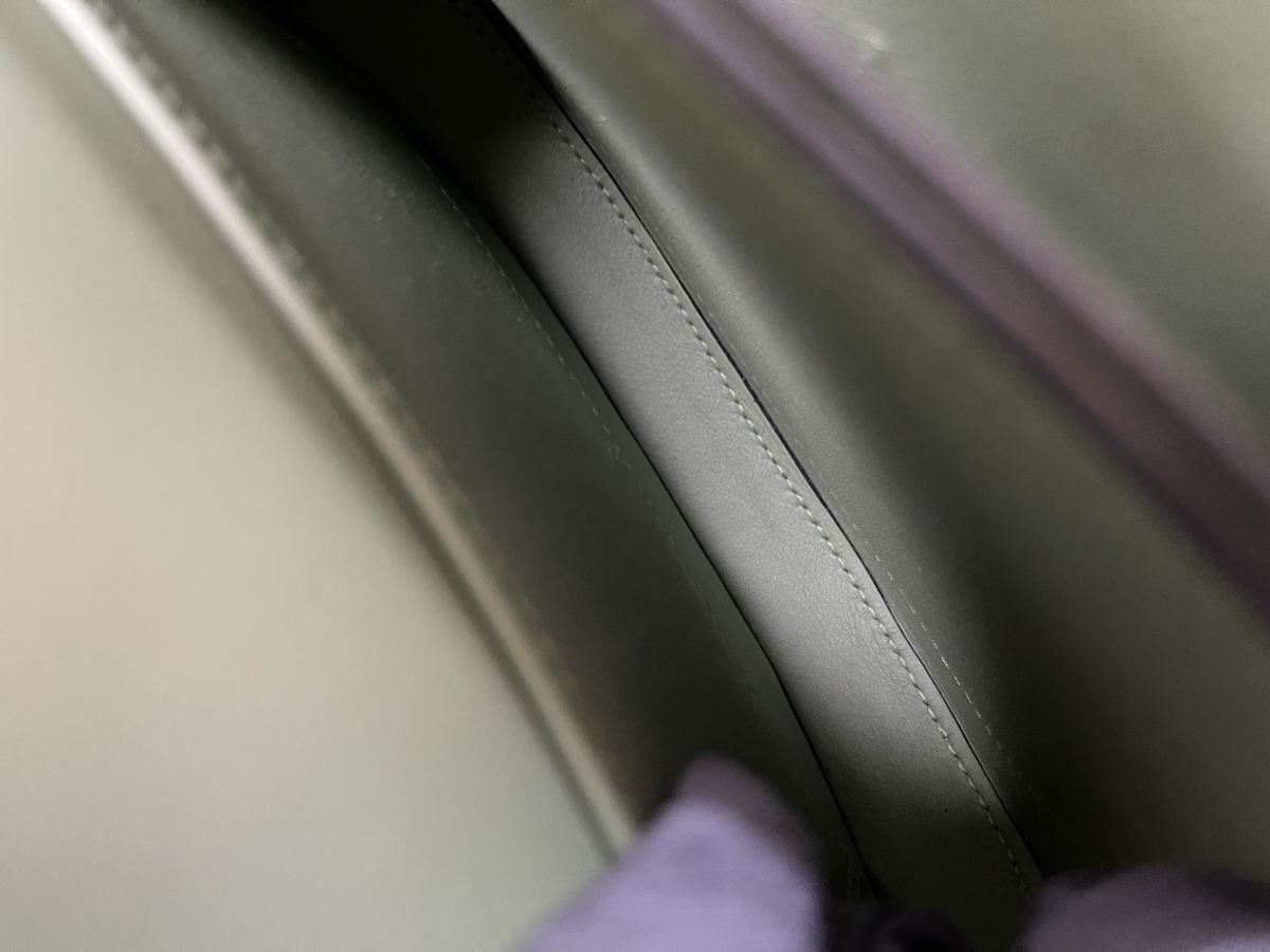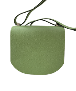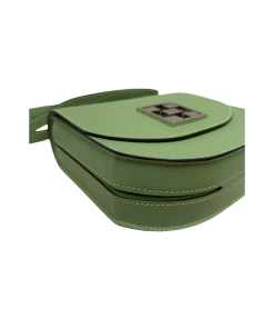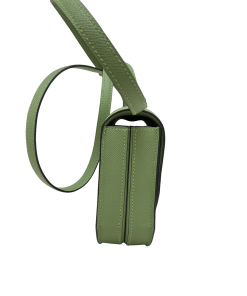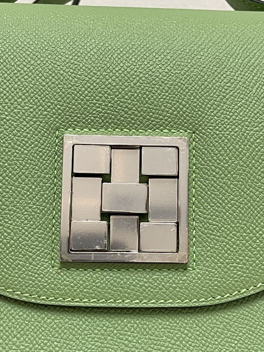 This unique bag is crafted in epsom with avocado color. The bag is featured in long shoulder strap with palladium links with a facing full flap that seals with palladium push closure.